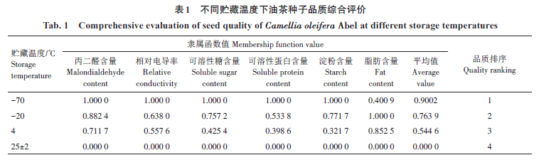关键词: 油茶, 种子, 贮藏温度, 品质, 综合评价
