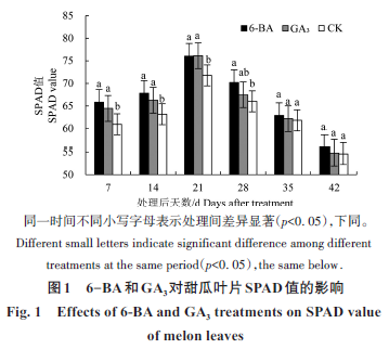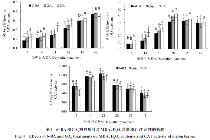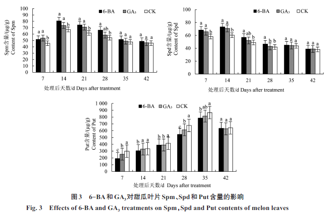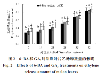 外源6-BA 和GA3 对甜瓜叶片乙烯释放量、多胺含量及膜脂过氧化的影响